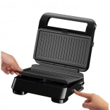 Z močjo 800 W je priprava vaših najljubših jedi hitra, brez dolgega čakanja na segrevanje. Sendvičnik je tudi prostorsko varčen, saj ga lahko preprosto shranite v navpičnem položaju.