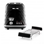 Toaster je opremljen s funkcijami, kot so odmrzovanje, preklic in pogrevanje, zato je idealen za različne vrste peciva. Elegantna črna barva serije Brillante vašemu interierju doda moderen pridih.