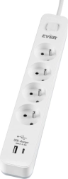 Zaščitite svoj dom in pisarno s prenapetostnim podaljškom EVER Protect s štirimi ozemljenimi vtičnicami in dvema USB priključkoma (USB‑A + USB‑C). Zahvaljujoč vgrajenemu hitremu polnilniku z močjo do 3,4 A boste zlahka napolnili pametne telefone, tablice in pametne ure. Varno delovanje zagotavljajo prenapetostna zaščita, otroško varovalo, dvo-polno stikalo in LED indikator stanja zaščite.