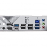 Za periferne naprave so na voljo sodobna vrata USB, vključno z USB 3.2 Gen2 Type‑A + Type‑C na zadnji plošči in USB 3.2 Gen1 Type‑C za sprednjo ploščo. Razširljivost omogočajo reže PCIe 4.0 x16, PCIe 3.0 x16 in M.2 Key E za Wi‑Fi modul.