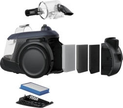 Napredni sistem HEPA filtracije ujame do 99,99 % drobnih delcev velikosti 0,3 µm – od prahu in pršic do alergenov – ter pomaga ohranjati higienično čisto okolje doma. Praznjenje posode poteka v dveh preprostih korakih brez dvigovanja prahu.