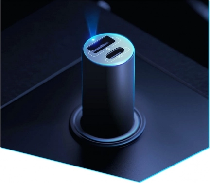Dva priključka – USB‑C PD in USB‑A – omogočata sočasno polnjenje dveh naprav. Vgrajena varna vezja ščitijo pred prenapetostjo in kratkim stikom, zato se lahko osredotočite na vožnjo.