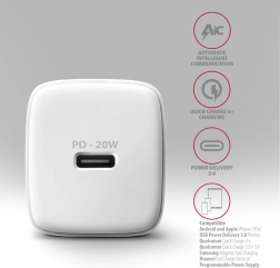 ACU-PD20W PD 20W omrežni polnilec, 1x vrata USB‑C, PD3.0/QC3.0/AFC/FCP/Apple White