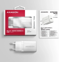 Kompakten omrežni polnilec AXAGON ACU-PD20W za hitro polnjenje mobilnih naprav. Z skupno močjo 20 W lahko polnilec polni telefone, tablice in druge mobilne naprave z najvišjo možno hitrostjo. Adapter ponuja obojestranski priključek USB‑C.