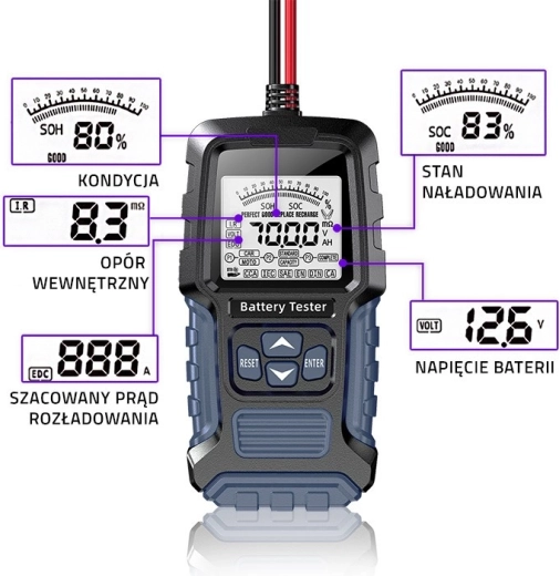 Preprosto in intuitivno upravljanje z velikim in berljivim LCD zaslonom omogoča enostaven nadzor stanja baterij s kapaciteto od 3Ah do 250Ah. Naprava ne potrebuje dodatnega napajanja, zahvaljujoč robustni zasnovi in kompaktnih dimenzijah pa je idealna za domačo in profesionalno uporabo.