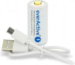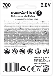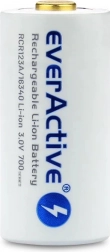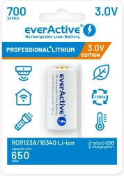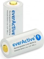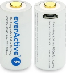 Inovativna polnilna baterija 16340 EverActive s kapaciteto 700 mAh je idealna izbira za vsak elektronski pripomoček. Ta Li-ion baterija izstopa s svojo posebno različico napetosti 3V, ki jo naredi neposredno zamenjavo za običajne baterije CR123. Njena konstrukcija vključuje elektronsko zaščito PCM, ki ščiti pred prebitjem, globokim praznjenjem in kratkim stikom.