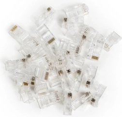 Prehodni RJ45 (8P8C) konektorji kat. 6 ponujajo zanesljivo zaključevanje omrežnih kablov z nizko prehodno impedanco in čistim kontaktom, kar vodi do visoke prepustnosti in manj napak pri prenosu. Prosojno ohišje olajša preverjanje vrstnega reda žil pred stiskanjem in skrajša čas namestitve.