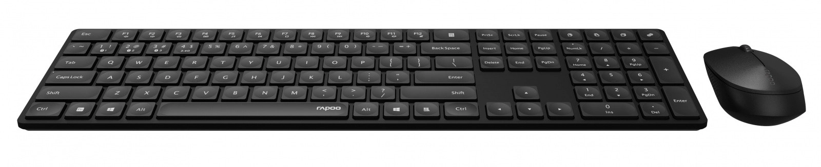 Baterija zdrži do 12 mesecev z enim polnjenjem, kar zmanjšuje potrebo po pogostem polnjenju. Elegantna in univerzalna zasnova tipkovnice in miške je primerna tako za pisarno kot za domačo uporabo.