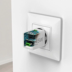 Podpora za Power Delivery in Qualcomm Quick Charge zagotavlja univerzalno uporabo. Polnilec je zaščiten pred prenapetostjo in kratkimi stiki zahvaljujoč inteligentnemu čipu.