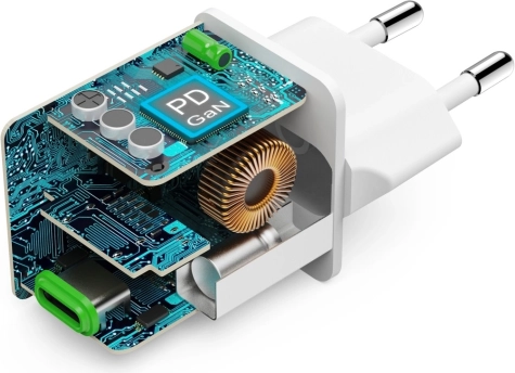 Tehnologija GaN omogoča učinkovitejše polnjenje z manj segrevanja. Polnilec je zato manjši, zmogljivejši in primeren za intenzivno uporabo.