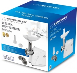 Iščete zanesljiv mlinček za meso za domačo kuhinjo? ESPERANZA Musaka združuje visoko zmogljivost z enostavno uporabo in vsestranskostjo. Zahvaljujoč nerjavečemu nožu z dolgo življenjsko dobo in kovinskemu polžu se odlično spopade z mesom in drugimi sestavinami, medtem ko tri sita omogočajo natančno izbiro želene grobosti mletja.
