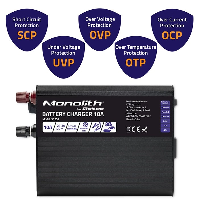 Stabilen in varen vir energije za vse akumulatorje tipa LiFePO4, AGM, GEL in SLA. Združljiv s širokim naborom različnih vrst akumulatorjev, polnilec Monolith zagotavlja stabilno in varno napajanje ter podaljšuje življenjsko dobo akumulatorjev.