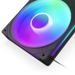Osem ARGB LED na vsakem rotorju ustvarja svetle, enakomerne učinke skozi polprosojne lopatice. Upravljajte prek NZXT CAM ali 5V ARGB na plošči.