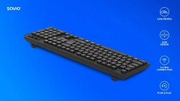 Elegantna in zanesljiva brezžična tipkovnica Savio KB-02 ponuja stabilno 2,4 GHz povezavo, polno ameriško postavitev (104 tipke) in nizek profil za udobno tipkanje doma in v pisarni. Zahvaljujoč življenjski dobi tipk do 8 milijonov pritiskov in enostavnemu Plug & Play je idealna izbira za vsakodnevno delo brez kablov.