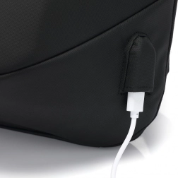 Stranski USB priključek omogoča preprosto polnjenje naprav med potjo s pomočjo power banke, nameščene v notranjosti nahrbtnika.