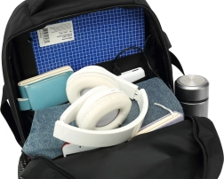 Nahrbtnik je zasnovan za prenašanje prenosnikov do velikosti 15,6", pa tudi osnovnih oblačil, tablic in druge elektronske opreme ter dokumentov. Stranski USB priključek lahko preprosto povežete s powerbankom, shranjenim v žepu, kar je idealno za vse, ki morajo telefon polniti na poti.