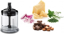 Del paketa sta tudi nastavek za sekljanje in nastavek za stepanje, s katerima lahko ustvarite širok nabor okusnih jedi. Od gladkih omak do popolno stepene smetane – vse je mogoče s tem večnamenskim mešalnikom.
