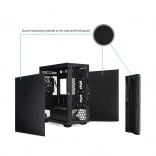 CHIEFTEC Pro Mini je moderno mATX ohišje, zasnovano za optimalno združljivost komponent in učinkovit pretok zraka. Stranski in sprednji paneli so opremljeni z materialom za absorpcijo hrupa, zato sistem ostane tih tudi pri visoki obremenitvi. Minimalističen videz z brušeno fronto se odlično poda v domačo pisarno ali igralni kotiček.