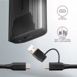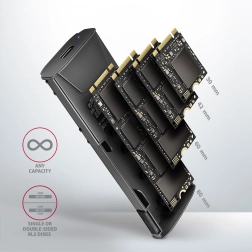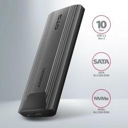Ohišje AXAGON se odlikuje po hitra vmesniku USB 3.2 Gen 2 s prenosno hitrostjo do 10 Gb/s, podpori sodobnim funkcijam, kot so UASP, TRIM, ter zmožnosti branja informacij S.M.A.R.T.. Primerno je za različne dolžine SSD kartic – 30, 42, 60 in 80 mm.