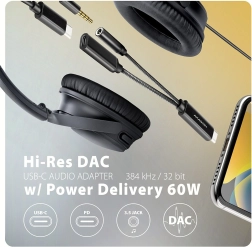 Zunanja zvočna kartica USB‑C DAC 32-bit 3,5 mm jack s Power Delivery 60 W
