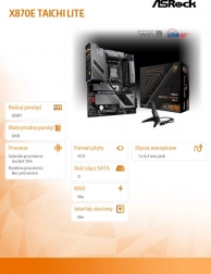 ASRock X870E Taichi Lite je zasnovana za maksimalno prepustnost in dolgoročno zanesljivost. Najnovejša vmesnika PCIe 5.0 za grafiko in Blazing M.2 odklopita potencial najhitrejših SSD, medtem ko USB4 tipa C (40 Gb/s) pospeši delo z zunanjimi diski, doke in zaslone. Wi‑Fi 7 (802.11be) in 5GbE LAN zagotavljata bliskovito hitro in stabilno omrežno povezavo z nizko zakasnitvijo.