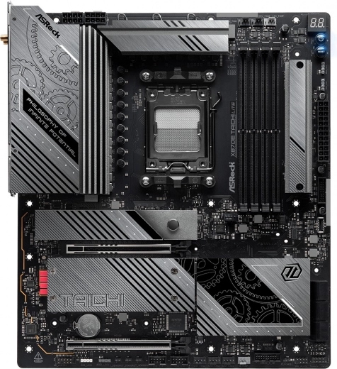 Vrhunska E‑ATX matična plošča za procesorje AMD AM5 združuje vrhunsko zmogljivost in stabilnost: DDR5 s profili XMP/EXPO, PCIe 5.0 za GPU in Blazing M.2, USB4 40 Gb/s, Wi‑Fi 7 in 5GbE LAN. Zahvaljujoč nizkoizgubnemu 8‑plastnemu PCB, kompozitnemu hlajenju VRM in vrhunskim 20K kondenzatorjem 1000 µF ponuja izjemno zanesljivost za igranje, ustvarjanje in profesionalno rabo.