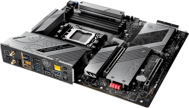 Zasnova plošče temelji na nizkoizgubnem 8‑plastnem PCB s kakovostnimi materiali in kompozitnem hladilniku VRM (večji aluminijasti pasiv, toplotna cev in integriran ventilator) za odlično odvajanje toplote. Vrhunski 20K kondenzatorji 1000 µF izboljšajo stabilnost napajanja in zmanjšajo valovanje, kar vodi do večje zanesljivosti sistema. Pomnilnik DDR5 s profili XMP/EXPO preprosto nastavite za hitrejše delo in igranje.
