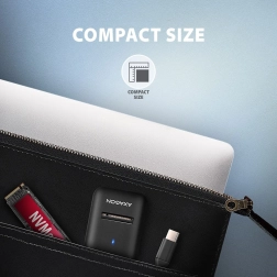 - Kompaktna izvedba: le 55 × 37 × 12 mm in teža 19 g, idealno za na pot.