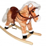 Prisrčen rjav gugalni konjiček manjših dimenzij otrokom prinaša veliko zabave in razvoja. Ponuja realistične zvoke rezgetanja in galopiranja, premikajoči se rep ter je opremljen s stremeni in lesenimi ročaji za varnejšo vožnjo. Ob guganju si otroci urijo grobo motoriko in ravnotežje. Dimenzije 74 × 28 × 58 cm. Baterije 3× AA niso priložene.