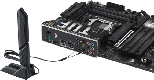 Zadnja I/O plošča ponuja številne priključke USB, video izhode, 2.5G LAN in brezžično povezavo z zunanjo anteno za stabilno omrežno zmogljivost.