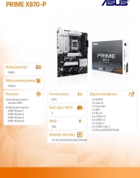 Plošča je zasnovana za sodobno delovno in igralno rabo, vključno z opravili umetne inteligence. Podpora hitrim modulom DDR5, več režam M.2 za NVMe SSD in bogata povezljivost z USB‑C, HDMI in LAN naredijo PRIME X870-P vsestransko izbiro za PC DIY navdušence in profesionalce.