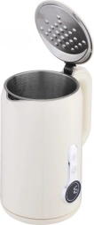 Električni grelnik vode Maestro s kapaciteto 1,7 litra in močjo 2200 W ponuja moderne funkcije in varno uporabo zahvaljujoč dvojnim stenam za znižanje površinske temperature.