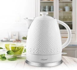 Uživajte v kombinaciji sloga in praktičnosti s keramičnim grelnikom MAESTRO. Visokokakovostna keramika zadržuje toploto, se zlahka čisti in na kuhinjskem pultu deluje elegantno. Zahvaljujoč moči 1500 W vodo hitro zavre, medtem ko notranji kazalnik največje ravni pomaga pri natančnem nalivanju.