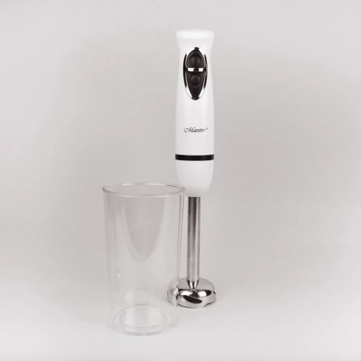 Univerzalen pomočnik za vsako kuhinjo: palični mešalnik z močjo 300 W zagotavlja hitro in enakomerno mešanje. Dve izbirni hitrosti vam omogočata prilagoditev moči tako za nežno kot intenzivnejšo obdelavo sestavin.