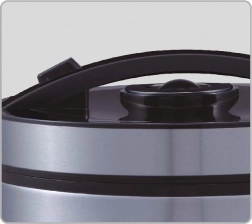 Praktične funkcije, kot so zakasnjen zagon 30 min–24 h, ohranjanje toplote (do 100 °C) do 24 h in samodejno čiščenje, prihranijo čas in energijo. Neprijemljiva posoda, primerna za pomivanje v pomivalnem stroju, ter bogata oprema olajšata vsakodnevno kuhanje.