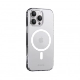 Prozoren zaščitni ovitek za iPhone 16 Pro Max z vgrajenim magnetom, združljivim z MagSafe polnilniki in dodatki. Močan magnetni oprijem zagotavlja varnost vaše naprave in olajša vsakodnevno uporabo.