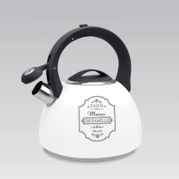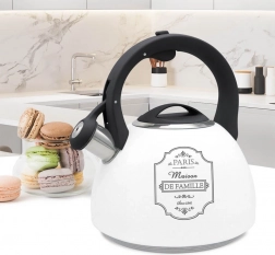 Tradicionalni čajnik Paris Maison je izdelan iz odpornega nerjavnega jekla in plastike, kar zagotavlja ne le estetiko, temveč tudi odpornost proti poškodbam. Opremljen je s praktično piščalko, ki signalizira vrenje vode, kar je uporabna funkcija za vsakodnevno uporabo. Odstranljiv pokrov olajša nalivanje vode in čiščenje čajnika, kar omogoča hitro in udobno uporabo.