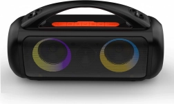 Dodelana akustika z 2× 3" gonilnikoma in 2× pasivnima radiatorjema prinaša bogate base in čiste visoke tone v razponu 100–20.000 Hz. Kompaktne mere, vgrajen ročaj in ramenski pas olajšajo prenašanje. LED RGB krožni učinki poudarijo atmosfero vsake zabave.