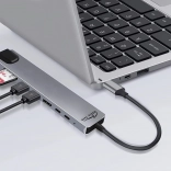 Iščete univerzalen hub, ki obvlada delo in zabavo? Ta večportna priklopna postaja 8 v 1 ponuja stabilno žično povezavo prek RJ45 Gigabit LAN, kristalno čisto sliko prek HDMI do 4K in hiter prenos datotek zahvaljujoč USB‑A 3.0 (5 Gb/s). Hkrati napaja naprave prek USB‑C PD 100 W, zato lahko udobno delate tudi z zmogljivim prenosnikom.