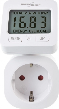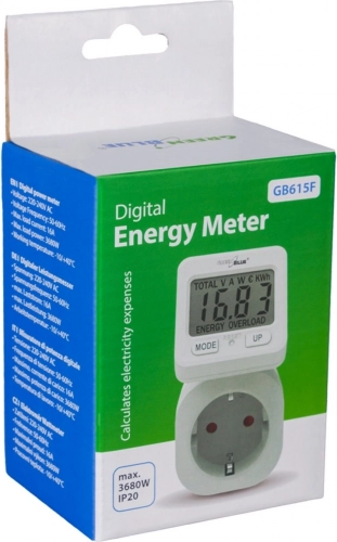 Merilnik energije GREENBLUE GB615 F natančno prikazuje napetost, tok, moč (W) ter skupno porabo (kWh) in oceno stroškov. Tako zlahka prepoznate neučinkovite naprave in takoj zmanjšate račune za elektriko ter ogljični odtis.