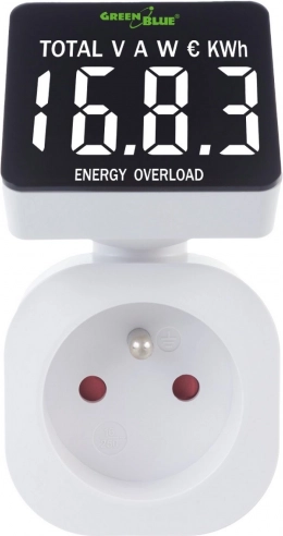 Praktični merilnik porabe energije GREENBLUE GB620E pomaga odkriti, katere naprave so neučinkovite, in tako znižati račune za elektriko. Na preglednem, vrtljivem zaslonu prikazuje trenutno moč, porabo v kWh in oceno stroškov. Zahvaljujoč maks. obremenitvi 3680 W, natančnemu merjenju in otroški zaščiti je idealen za gospodinjstva in pisarne.