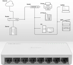 Razširite svoje omrežje preprosto in brez napora. To kompaktno stikalo Qoltec omogoča hkratno priključitev do osmih naprav in nudi gladek prenos filmov, iger in delovnih datotek. Zaradi samodejnega križanja vodov (Auto MDI/MDI-X) na vsakem priključku odpade potreba po posebnih kablih, namestitev pa je izvedena v hipu.