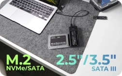 Docking postaja je zasnovana za enostavno in učinkovito povezovanje vaših pomnilniških diskov. Omogoča priklop SSD in HDD z možnostjo enostavnega preklapljanja med njimi zahvaljujoč sprednjemu gumbu za vklop/izklop. To lažje omogoča hitro menjavo diskov brez zapletov.