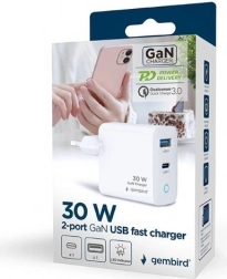Ta sodoben 30‑vatni GaN polnilnik združuje visoko moč, kompaktne mere in univerzalno uporabnost. Zahvaljujoč priključkoma USB‑C in USB‑A zlahka napolnite pametni telefon, slušalke, tablico in združljiv prenosnik. Podpora protokolov Power Delivery in Quick Charge 3.0 zagotavlja hitro in varno polnjenje brez nepotrebnega čakanja.