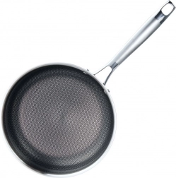 Triplastno telo z aluminijastim jedrom zagotavlja enakomerno zapečenost od sredine do robov. Ergonomski jekleni ročaj se ne pregreva in ima praktično odprtino za obešanje. Ponev je odporna proti kislinam, rji, deformacijam in detergentom, zato je idealna za vsakodnevno uporabo.