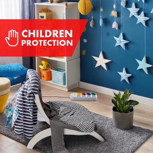 Vsaka od štirih vtičnic je opremljena z osvetljenim stikalom, ki omogoča enostavno in samostojno upravljanje napajanja, kar prinaša udobje in prihranek energije.