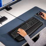 Z odzivnimi, udobnimi tipkami je tipkanje natančno, hitro in manj naporno – idealno za uporabnike, ki tipkajo z desetimi prsti. Povezava prek USB‑A je takojšnja in stabilna, brez potrebe po baterijah. Površine dodatno izpolnjujejo MIL‑STD‑810H Method 504.3 za odpornost proti obrabi in delovanju razkužilnih tekočin.