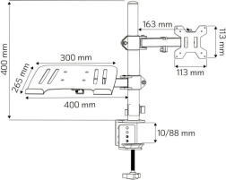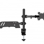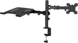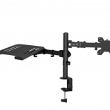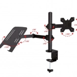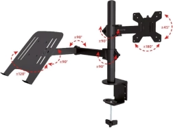 Nosilec za monitor in prenosnik je idealen za sodobna pisarniška okolja. Omogoča širok nabor nastavitev, vključno z nagibom ±45° za monitor in polico za prenosnik, vrtenjem monitorja za ±180° in police za prenosnik za ±120°, ter možnostjo obračanja monitorja za 360° (PIVOT). Višino je mogoče nastaviti vzdolž 400 mm navpičnega droga glede na vaše potrebe.