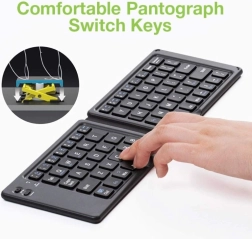 Izjemno prenosna zložljiva tipkovnica s tehnologijo Bluetooth 3.0 ponuja standardno razporeditev za udobno tipkanje kjerkoli. Zahvaljujoč lahki in kompaktni zasnovi se prilega v žep, brezžično se poveže do 10 metrov in podpira iOS, Android in Windows. Vgrajena polnilna baterija zagotavlja do 40 ur delovanja, samodejno prebujanje/spanje pa varčuje z energijo med prenašanjem.