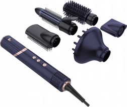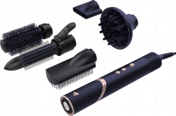 Pet snemljivih nastavkov pokrije sušenje, glajenje ter ustvarjanje valov in volumna: difuzor, koncentrator, ploščata, vrtljiva in okrogla krtača.